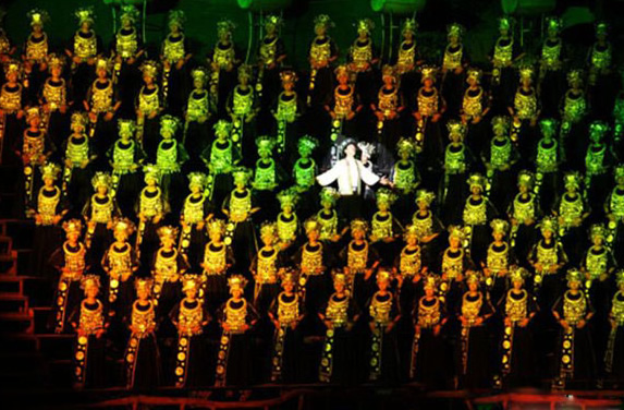 以此基礎(chǔ)進行了藝術(shù)再創(chuàng)造,悲傷、歡樂、笑容、淚水交合成一個曲折動人的故事。整場演出體現(xiàn)人物細節(jié),以個性化的敘事結(jié)構(gòu)給人以親近感和頭尾呼應(yīng)的完整感。汲取世界豐富的音樂文化元素和表現(xiàn)形式,輔之以現(xiàn)代高科技的舞臺特效技術(shù),對世界音樂歌舞劇的一次成功的創(chuàng)新,成為中國山水實景演出的劃時代巨獻。