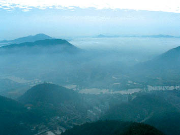 瀏陽(yáng)城西約15公里神嶺一帶,三峰鼎峙,蔥青入郭,中間有一大湖,曰巨湖,其山也叫巨湖山。巨湖煙雨乃指春夏之交,清晨山頂石煙繚繞,霧入云霄,儼若雨下,變幻萬(wàn)千,周忠信詞曰:“煙雨暗層巒,西望茫茫,樹墟城郭霧中看。氣涌潮心膚寸引,釀就輕寒。幾縷向空翻,數(shù)點(diǎn)飄殘,瀟湘彭蠡合奇現(xiàn)。疑是南宮傳筆意,水墨溪山。”