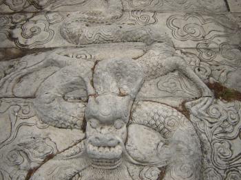 廟前面有學(xué)宮坪,亦名學(xué)坪,坪南端有大明壁。廟宇紅墻黃瓦,氣勢宏偉。正門曰奎星門,前院左右各植檜樹,常年翠綠,散發(fā)幽香。奎星門內(nèi)有月形泮池,池周護(hù)以石欄。泮池附近有石坊三座,正南石坊匾額鐫有“斯文在茲”四字,東西兩坊貫通街衢。通過石坊便是大成門。進(jìn)門左右是飛檐綠瓦的鐘鼓亭。大成門通向大成殿,有石鋪甬道直抵大殿臺基。臺高一米,全系石塊疊成。臺階分左右兩道,中有石雕盤龍,綴以云海波濤,栩栩如生,躍然石上。大成殿為歇山式重檐結(jié)構(gòu),周圍有16根圓石柱,內(nèi)外枋、檁、藻井、斗拱、扇梧均五彩施繪,黃瓦飛檐,蔚為壯觀。殿后有亞圣殿,與大成門、奎星門前后襯應(yīng),更顯出大成殿主體的雄偉。