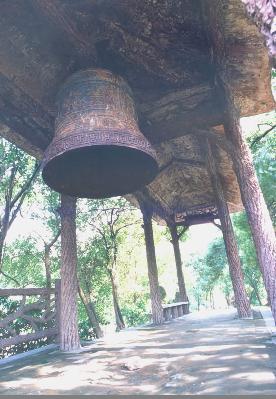 飛來鐘原為君山崇勝寺的古鐘,南宋淳佑五年(公元 1245 年),荊湖安撫制置使孟珙重修崇勝寺時復制一鐘,鐘高一丈多,大數(shù)圍,重4000余斤,上有“淳佑五年造”,鐘身上鑄有“皇帝萬歲,國泰民安,風調(diào)雨順,五谷豐登”16 個大字,四方凸出的部分用青銅澆鑄的四條金龍,栩栩如生,形態(tài)逼真。原鐘在1966 年被砸毀,現(xiàn)在的飛來鐘是1979 年由市閥門廠復制而成,高約2 米,直徑1.2 米,重約 2 噸。鐘身上改鑄著鐘相、楊幺起義的戰(zhàn)斗口號“均貧富,等貴賤”六字,比前者更富有深刻的含義。這口古鐘有段優(yōu)美的傳說。相傳南宋初年,庭湖畔數(shù)以十萬計的農(nóng)民在楊幺率領(lǐng)下,掀起了轟轟烈烈的農(nóng)民起義。相傳一天夜晚,朝廷派兵前來偷襲駐扎在君山的楊幺寨,忽然從天上飛來一口巨鐘,鐘聲陣陣,催醒義軍,奮起抗敵,因此叫飛來鐘。這是人們深切懷念楊幺起義軍,用各種方式來表達贊美之情。古鐘的傳說便寄托了人們的這種心情。有人據(jù)此認為,原來的飛來鐘系楊幺起義軍所鑄的報警器。