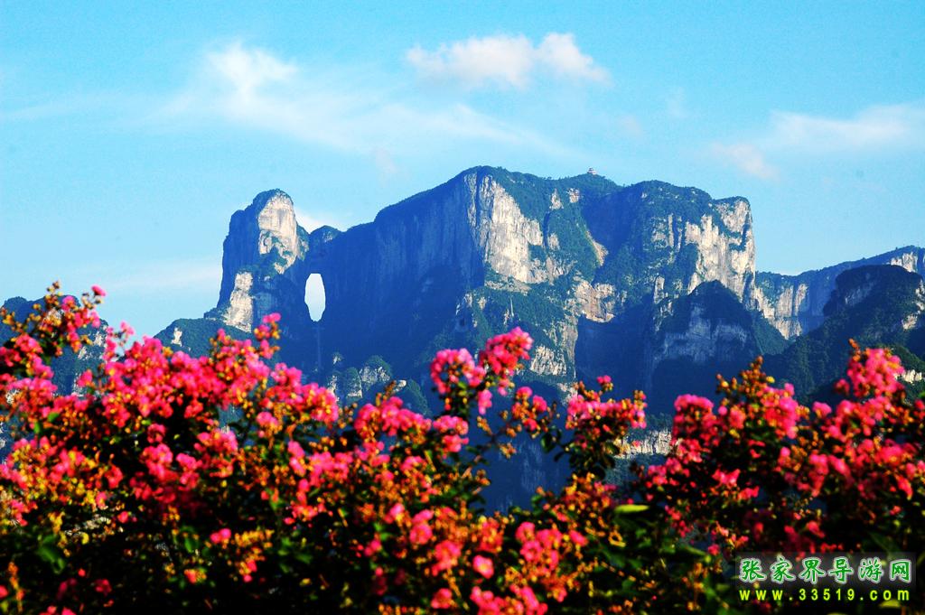 天門洞位于天門山山體的中上部,是世界上最高海拔的天然穿山溶洞,海拔1300米 ,其高131.5米,寬57米 ,深60米。它南北對(duì)開(kāi)于千尋素壁之上,扶搖而通天,似明鏡似天門鑲嵌于蔚蔚天幕之上,終年吞云吐霧,蔚為壯觀中更加神秘莫測(cè)。“天門洞開(kāi)云氣通,江東峨眉皆下風(fēng)”元朝的著名詩(shī)人張兌曾這樣贊嘆,磅礴的氣勢(shì)由此可見(jiàn)。1700多年來(lái),這一道奇絕天下的勝景吸引著無(wú)數(shù)的探訪者趨之若騖。特別是在1999年,世界特技飛行大師架機(jī)穿越天門洞,在全球引發(fā)了轟動(dòng)效應(yīng),收看現(xiàn)場(chǎng)直播的觀眾達(dá)到8億之多。