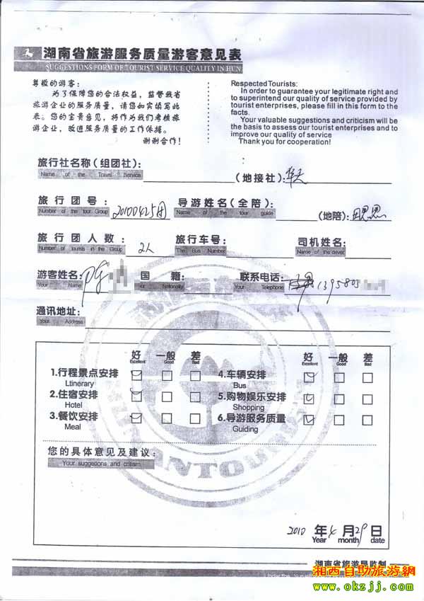 - 2011年10月26日張小姐一行18人旅游質量反饋 [10482]