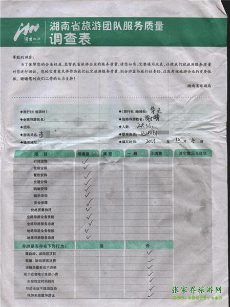 2011年10月4日張先生一行3人旅游質(zhì)量反饋